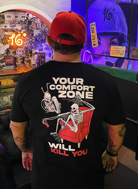 A Camiseta Comfort Zone é feita para os verdadeiros apaixonados por motocicletas, garantindo conforto e estilo durante as aventuras sobre duas rodas. Confeccionada com material de alta qualidade, é perfeita para uso durante passeios e para expressar a paixão pela vida sobre duas rodas. Além disso, a estampa exclusiva traz personalidade ao visual, com mensagens impactantes que representam o espírito aventureiro dos motociclistas. Garanta já a sua Camiseta Comfort Zone e leve consigo toda a atitude e autenticidade que o universo das motos proporciona.